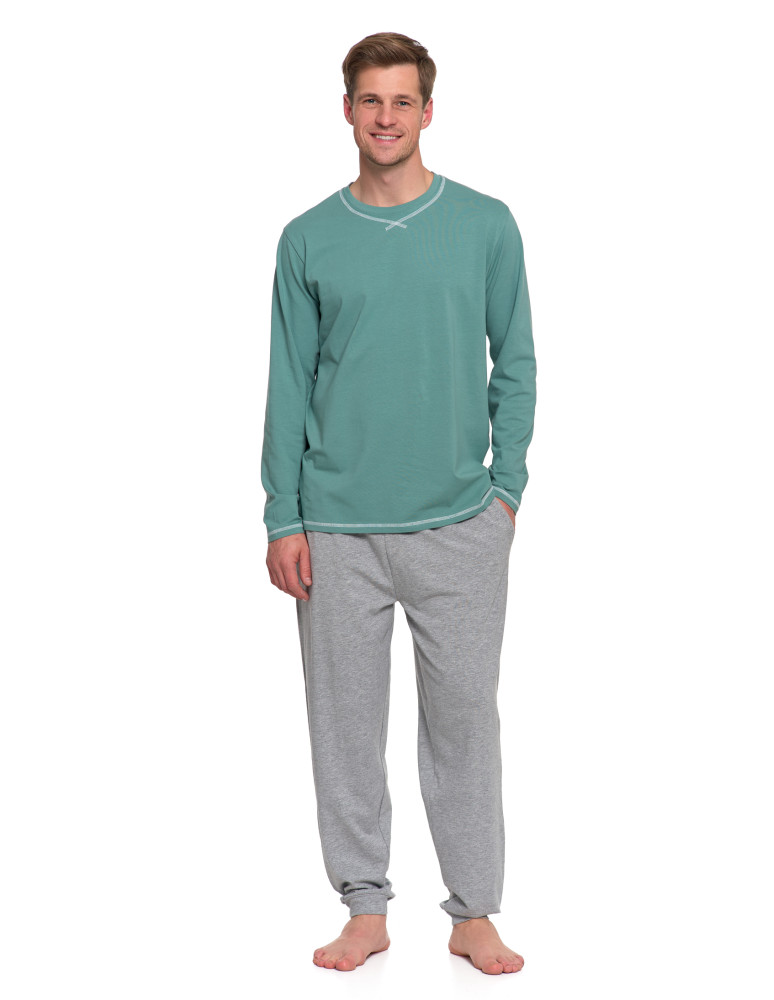 Męska piżama bawełniana z długim rękawem ZIELONY
