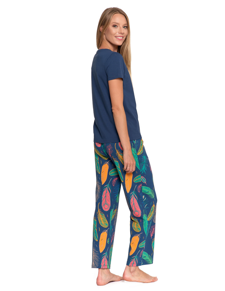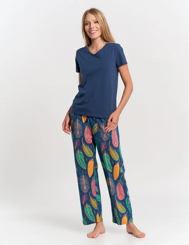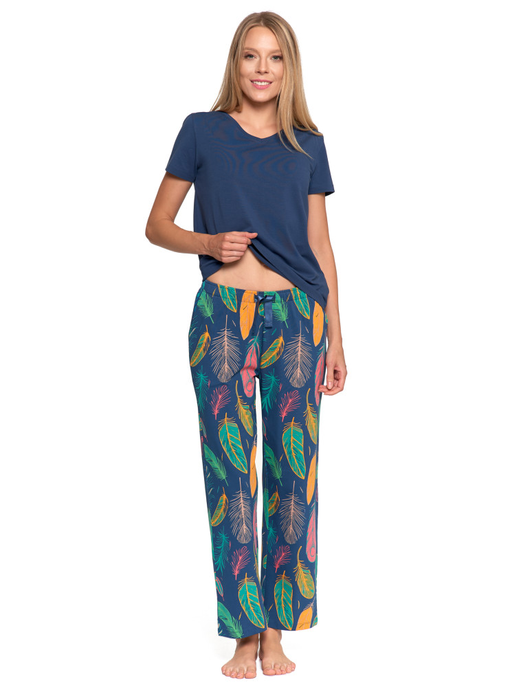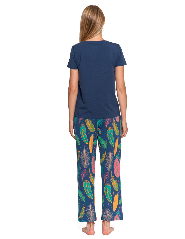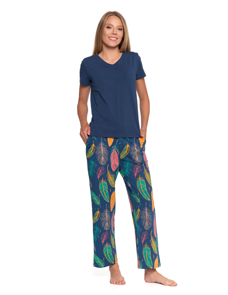 Piżama damska z krótkim rękawem i długimi spodniami GRANATOWY