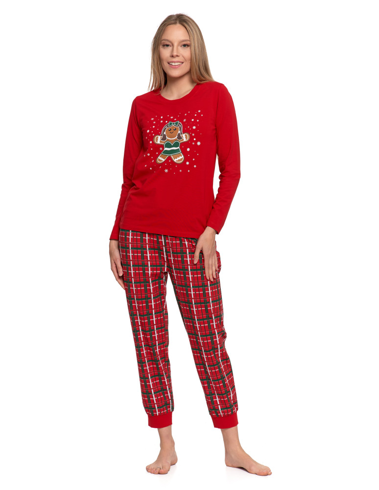 Damska piżama świąteczna z nadrukiem pierniczka CZERWONY