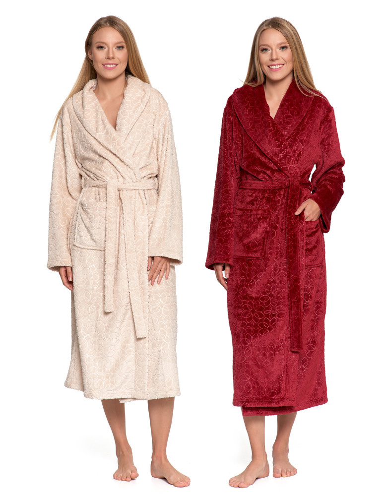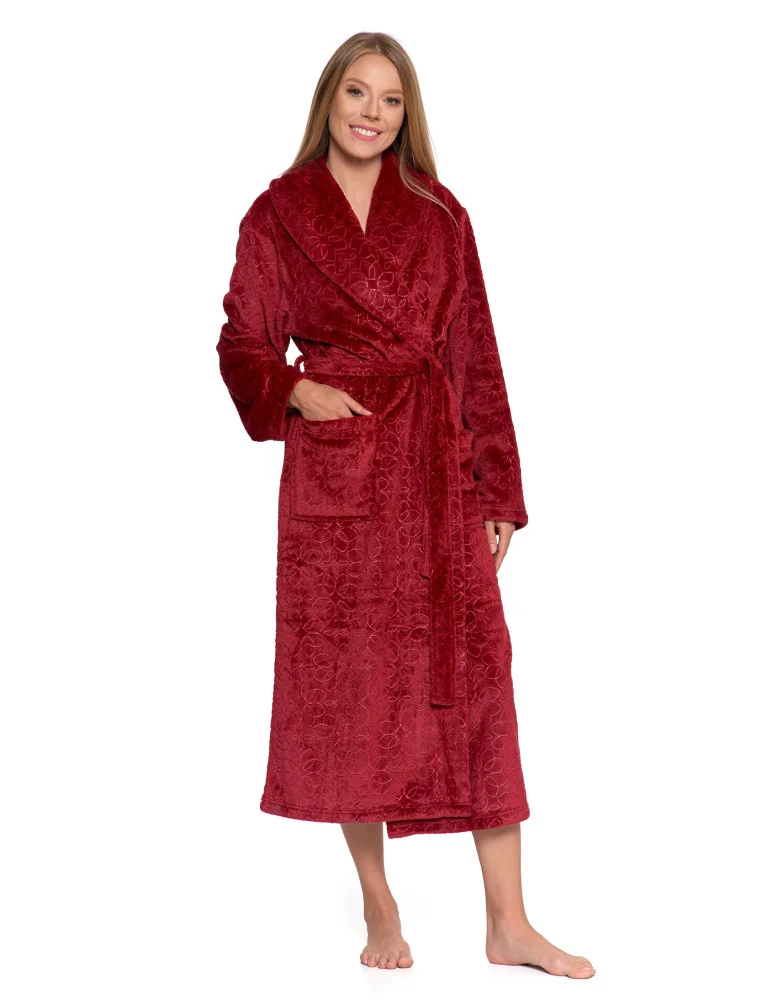 Ciepły szlafrok damski długi z tłoczonym wzorem BORDOWY