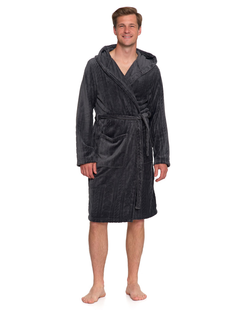 Ciepły szlafrok unisex z kapturem GRAFIT