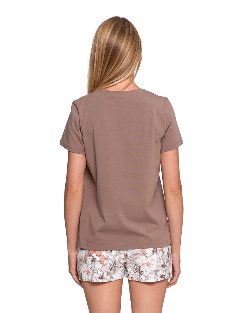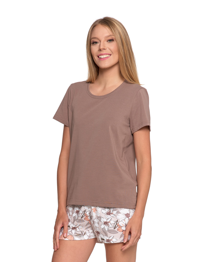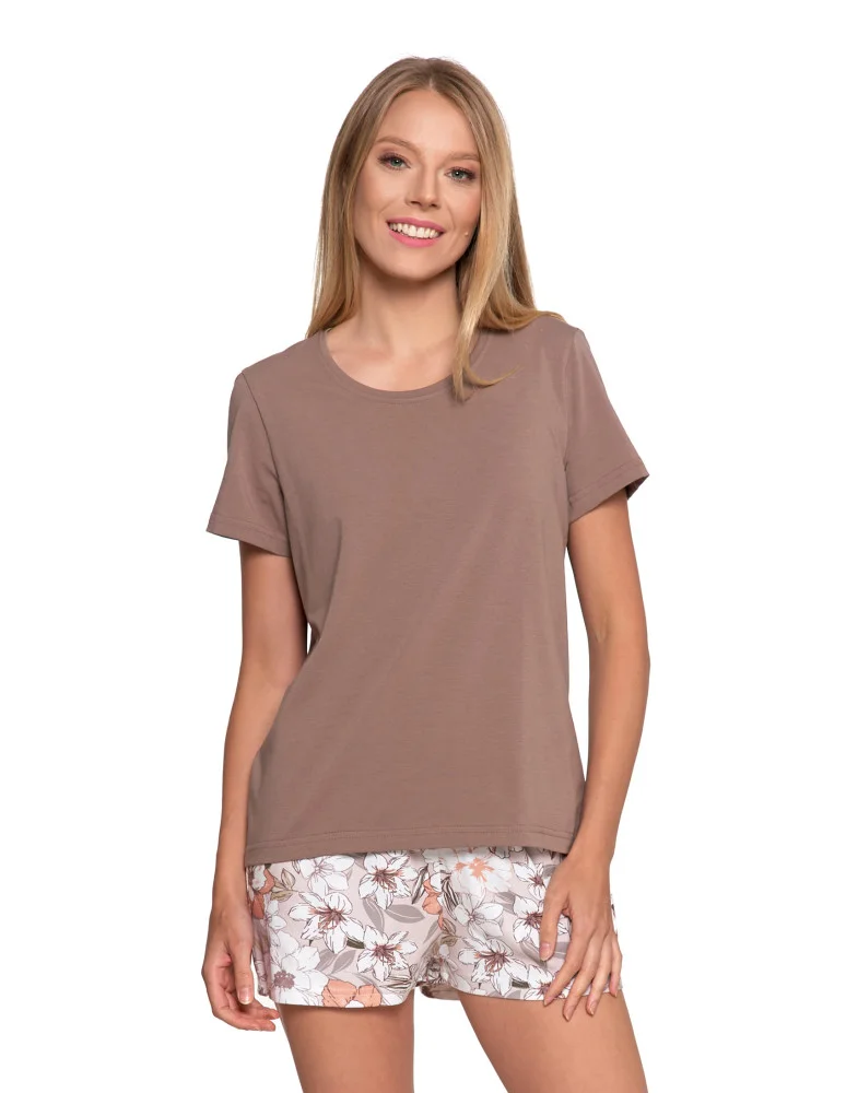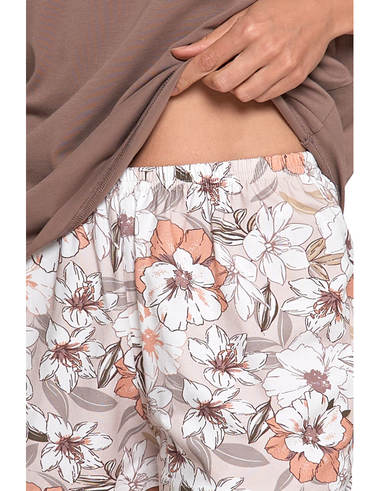 Piżama damska z krótkim rękawem i szortami bawełniana KREMOWY