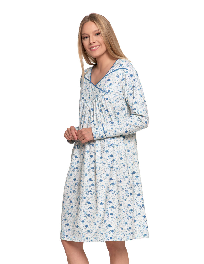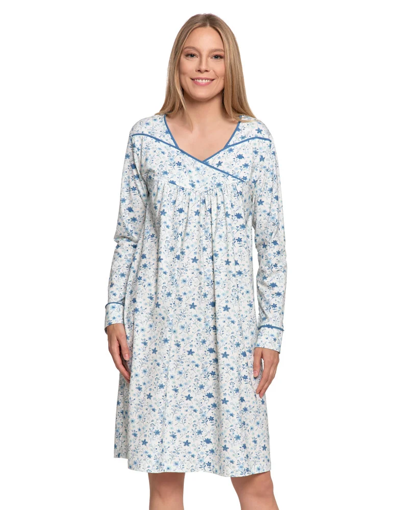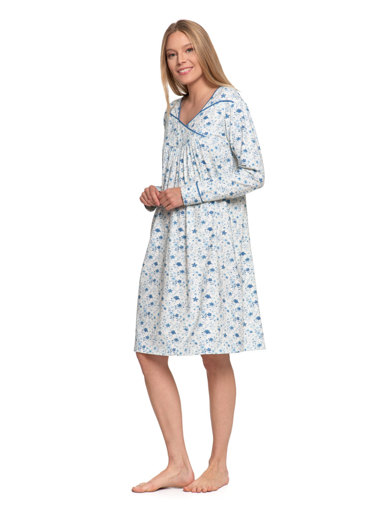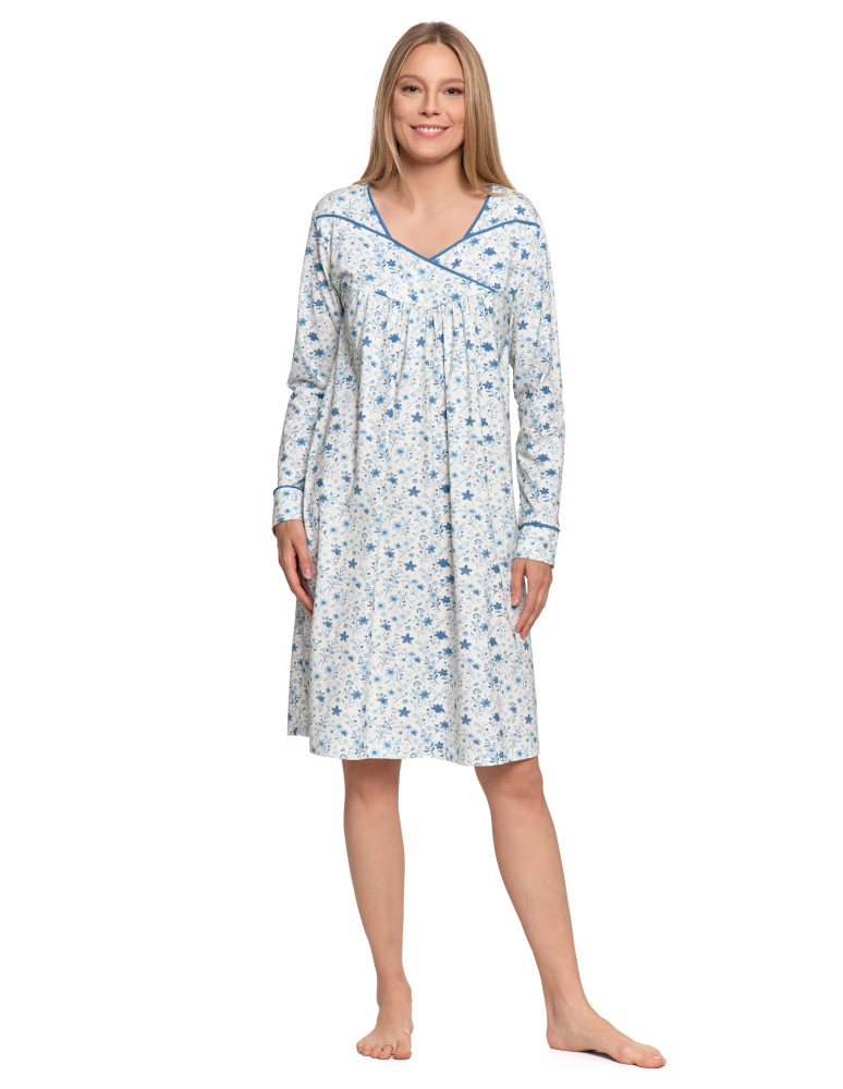 Koszula nocna damska z długim rękawem bawełniana luźna WZÓR 1