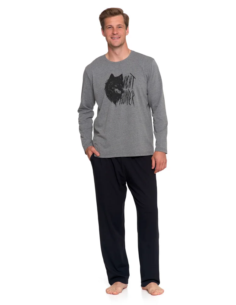 Piżama męska długi rękaw i spodnie z nadrukiem GRAFIT