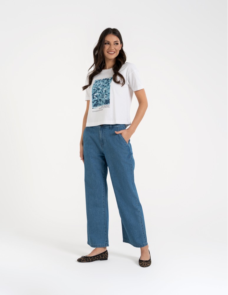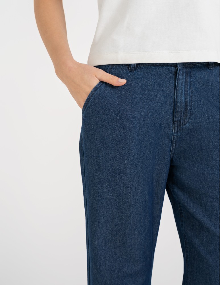 Wykonane w 100% z bawełny, spodnie są przewiewne, lekkie i przyjemne dla skóry. Cienki denim sprawia, że model świetnie sprawdza się także w cieplejsze dni, oferując wygodę bez uczucia ciężkości.
