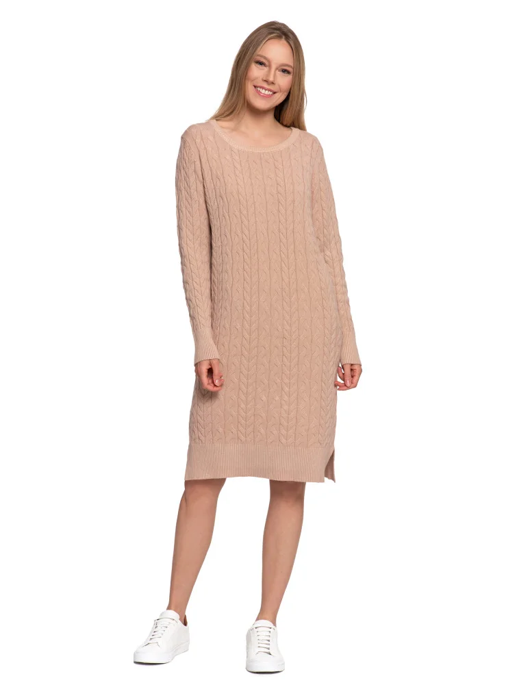 Sukienka swetrowa damska z warkoczowym splotem BEŻOWY