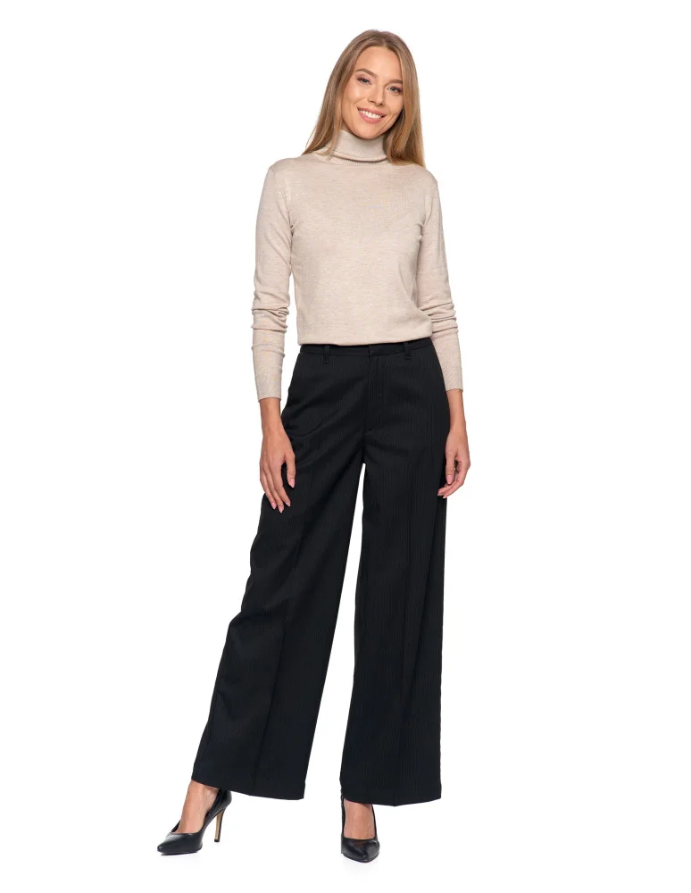 Damskie eleganckie spodnie w kant z szeroką nogawką CZARNY