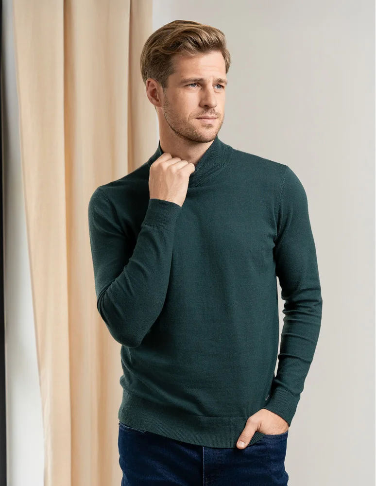 Męski sweter z półgolfem CIEMNY ZIELONY
