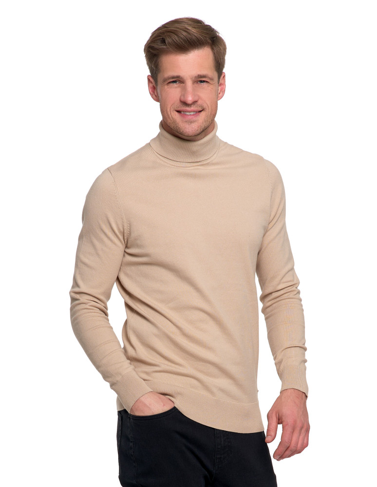 Stylowy męski golf basic to wygodna propozycja, która sprawdzi się w szafie każdego mężczyzny. Wykonany z wysokiej jakości mieszanki bawełny z domieszką włókien syntetycznych, gwarantuje komfort noszenia i idealne dopasowanie. Klasyczny fason z golfem oraz elastyczne ściągacze przy rękawach i dole swetra sprawiają, że świetnie prezentuje się zarówno w stylizacjach casualowych, jak i eleganckich. Dostępny w stonowanych, uniwersalnych kolorach – idealny do jeansów, chinosów czy pod marynarkę.
