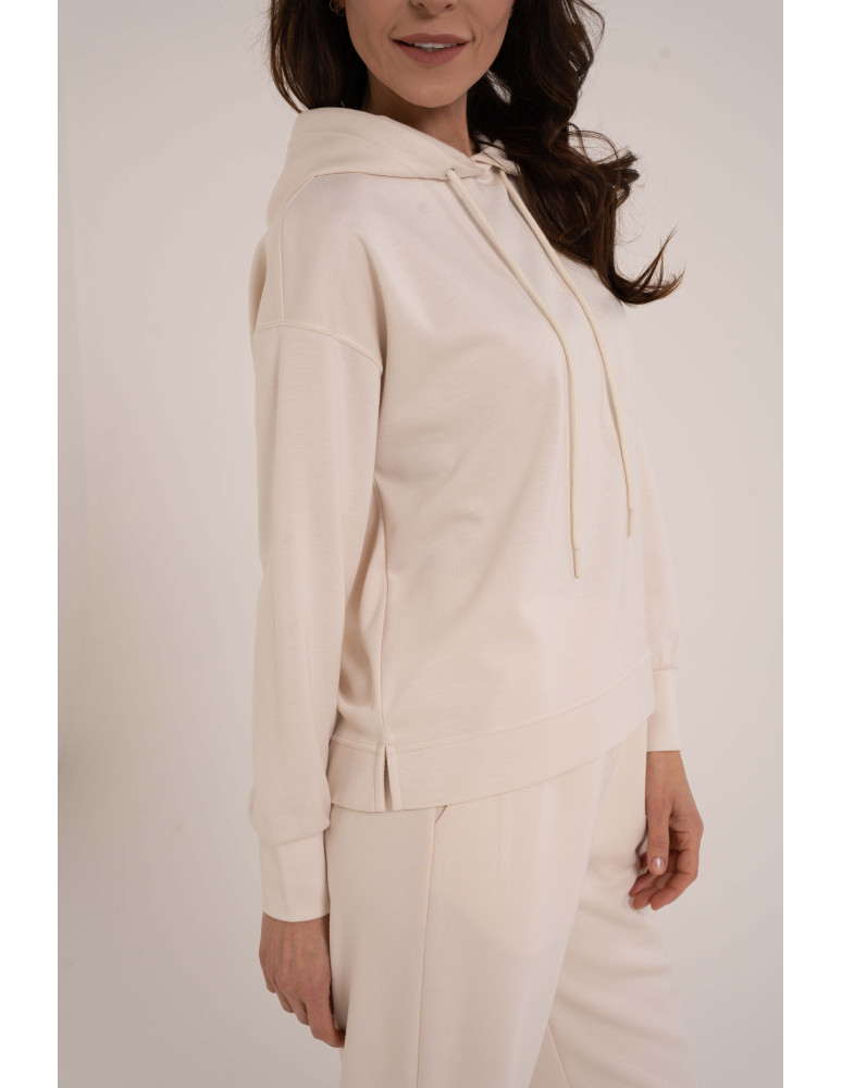 Ta damska bluza to doskonały wybór na każdą porę roku, łącząca wygodę z funkcjonalnością. Wykonana z miękkiego materiału, jest lekka, przyjemna w dotyku i zapewnia pełną swobodę ruchów. Model wkładany przez głowę z kapturem chroni przed chłodnym wiatrem, a jej prosty, klasyczny krój sprawia, że bluza doskonale komponuje się z różnymi stylizacjami, zarówno sportowymi, jak i casualowymi. Bluza jest idealna na codzienne wyjścia, podróże, jako dodatkowa warstwa ciepła czy relaksu w domu.