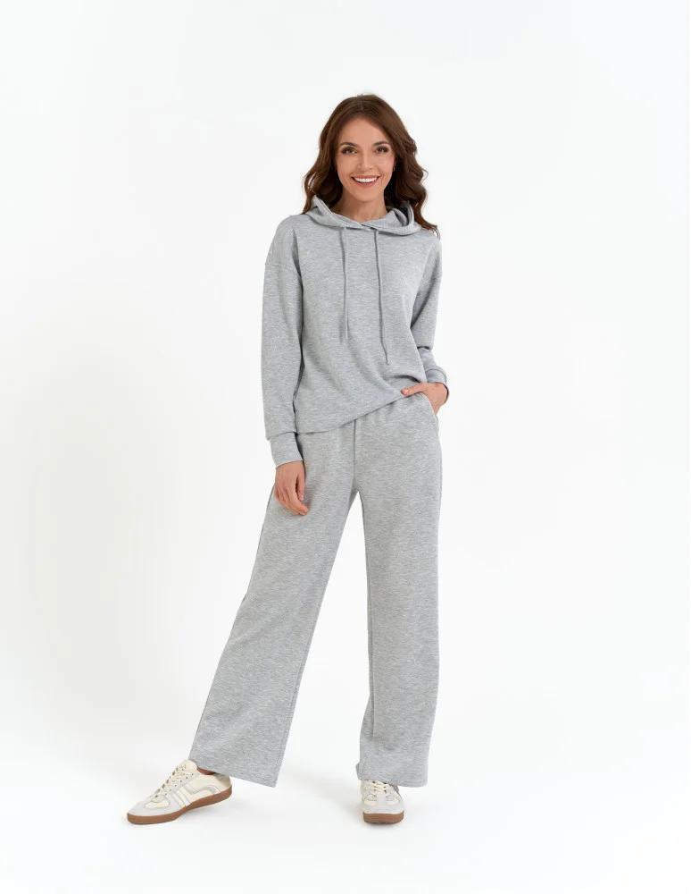 Spodnie dresowe damskie szerokie z kieszeniami SZARY