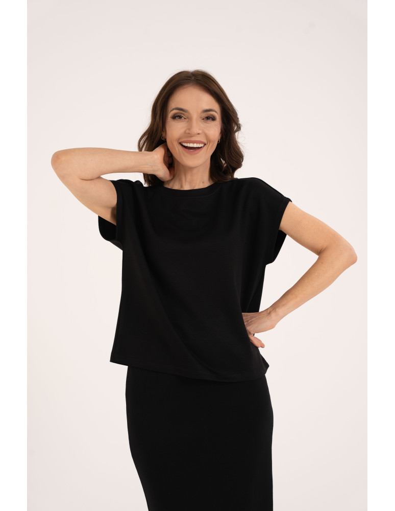 Bluzka damska o klasycznym kroju z wiskozą CZARNY