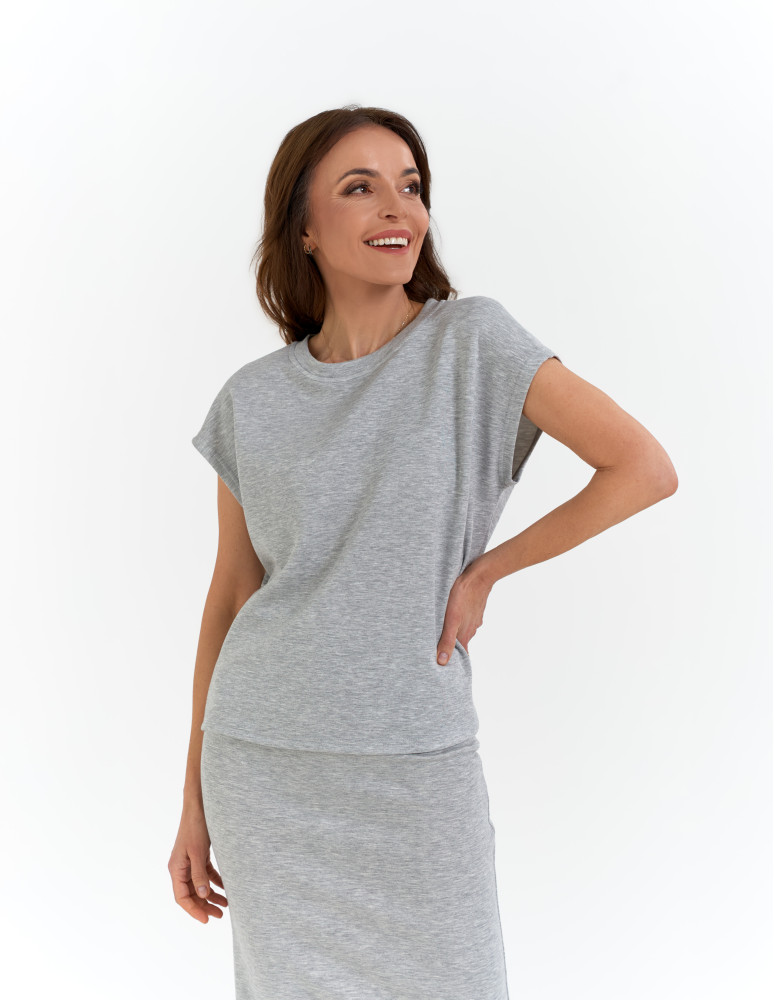 Ta damska bluzka basic łączy prostotę i elegancję, oferując wygodę przez cały dzień. Wykonana z 50% wiskozy, materiał jest miękki, przewiewny i przyjemny w dotyku, zapewniając komfort nawet w cieplejsze dni. Skład produktu zapewnia odpowiednią elastyczność, dzięki czemu bluzka doskonale dopasowuje się do sylwetki. Jej klasyczny krój i prosty design sprawiają, że jest to idealny wybór na co dzień, do pracy lub na spotkania towarzyskie. To uniwersalny element garderoby, który świetnie komponuje się z jeansami, spódnicami czy eleganckimi spodniami.