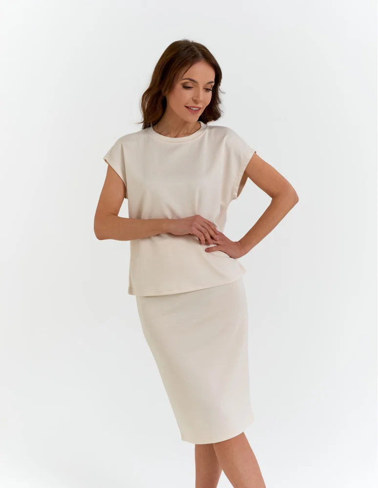 Bluzka damska o klasycznym kroju z wiskozą KREMOWY