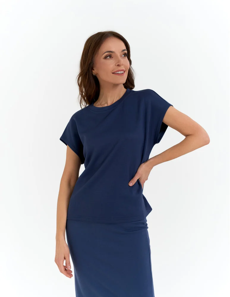 Bluzka damska o klasycznym kroju z wiskozą NIEBIESKI