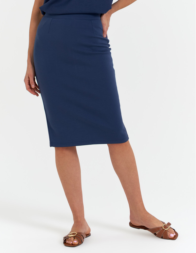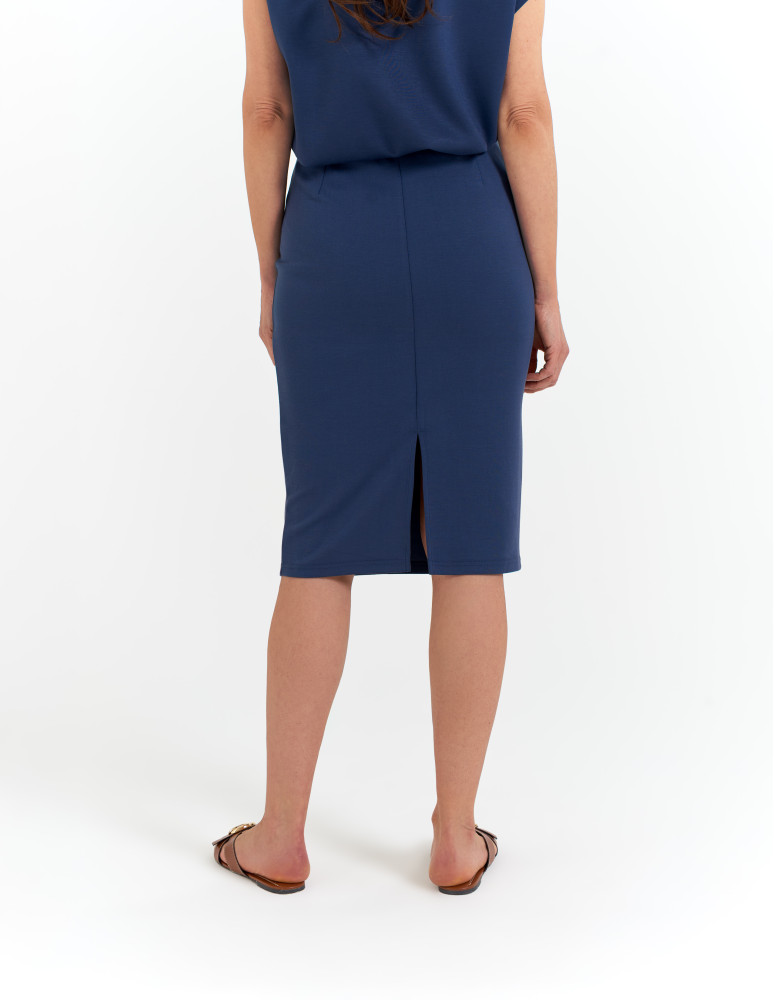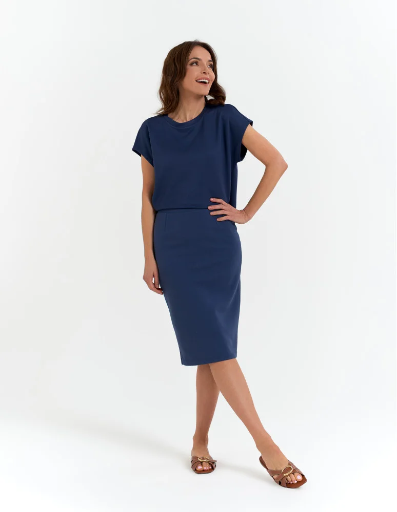 Spódnica damska ołówkowa dzianinowa z wiskozy NIEBIESKI