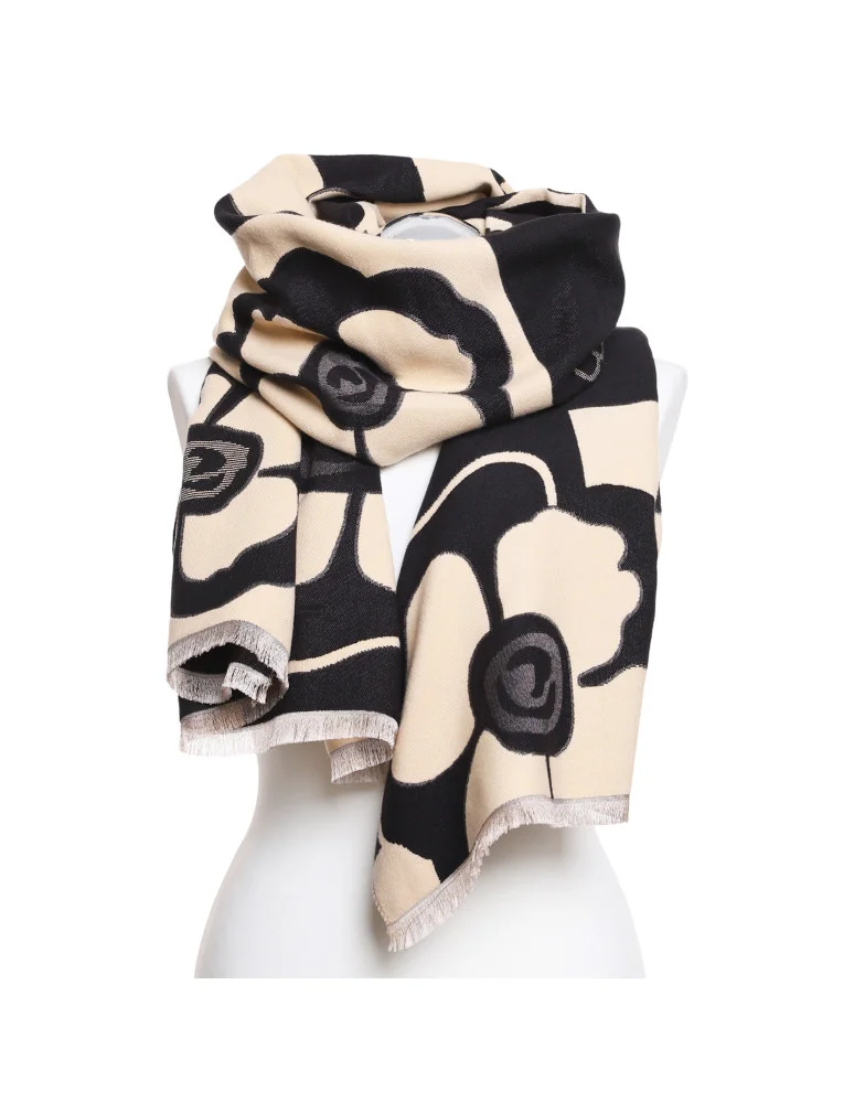 Szal damski z motywem kwiatowym CZARNY