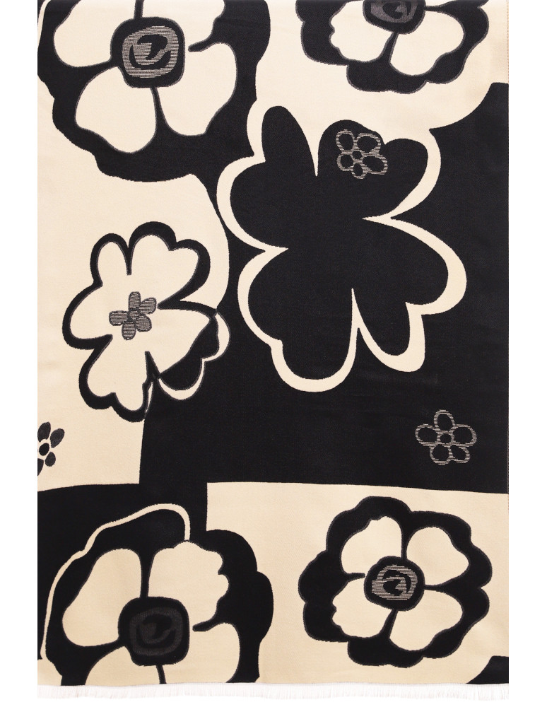 Dodaj charakteru swoim jesienno-zimowym stylizacjom. To wyjątkowy, damski szal w beżowo-czarnej tonacji z dużym, graficznym motywem kwiatowym. Jego miękka i przyjemna w dotyku tkanina doskonale otula szyję, zapewniając ciepło w chłodniejsze dni. Frędzle na zakończeniach dodają lekkości i kobiecego uroku. Wyróżniający się wzór sprawia, że ten szalik to nie tylko praktyczny element garderoby, ale również świetne dopełnienie stylizacji – zarówno codziennej, jak i bardziej eleganckiej. Idealny na prezent dla stylowej kobiety.