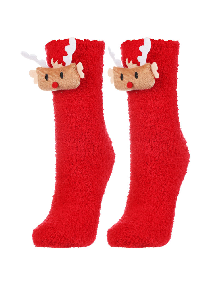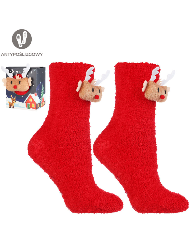 Damskie skarpety świąteczne z reniferem 3D CZERWONY