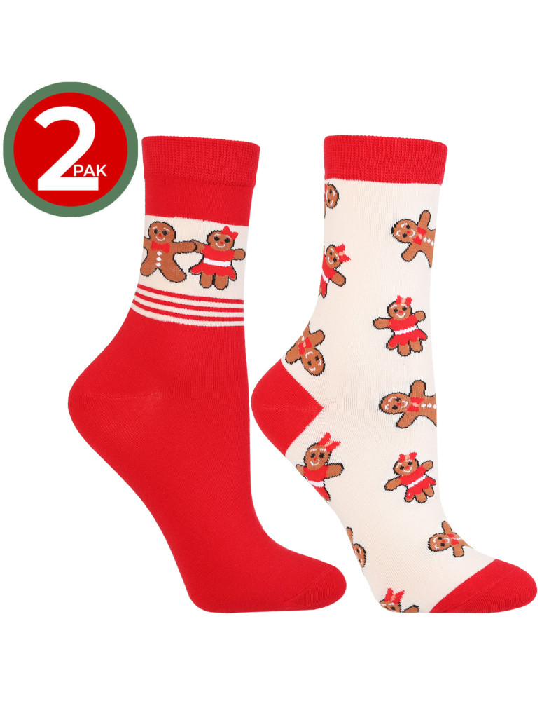 Skarpetki damskie długie świąteczne z piernikami 2-pak WIELOKOLOROWY