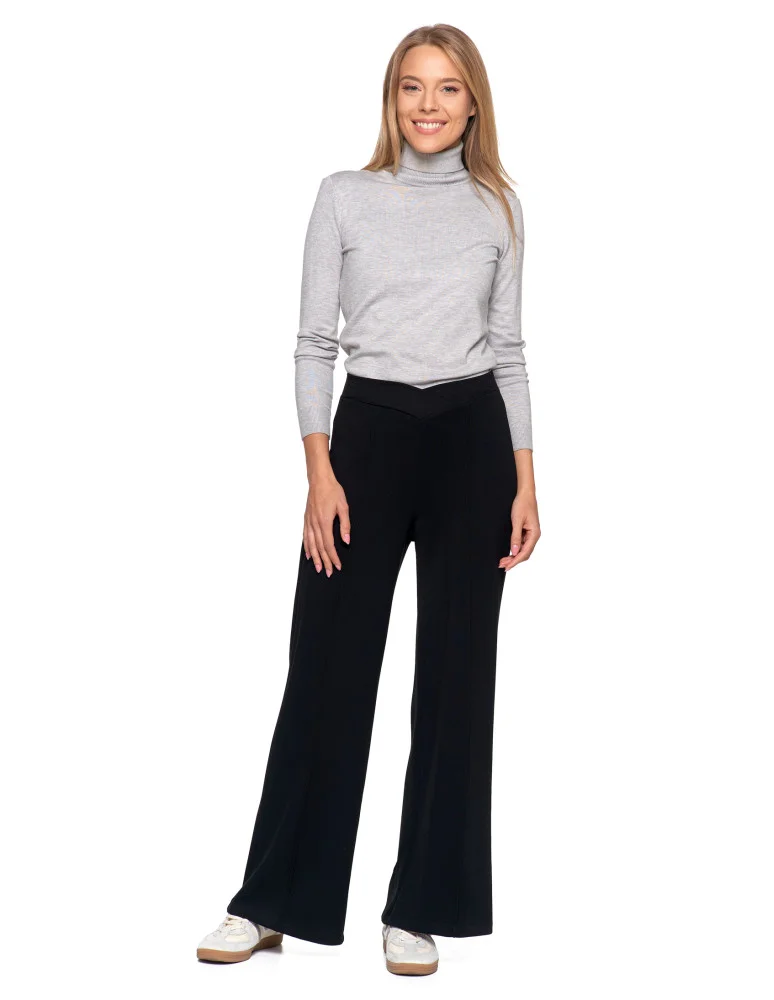 Spodnie damskie z szeroką nogawką CZARNY