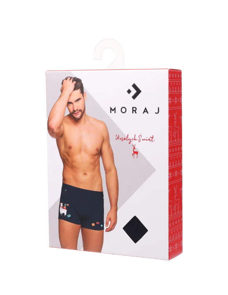 Świąteczne bokserki męskie z lamą i prezentami GRANATOWY