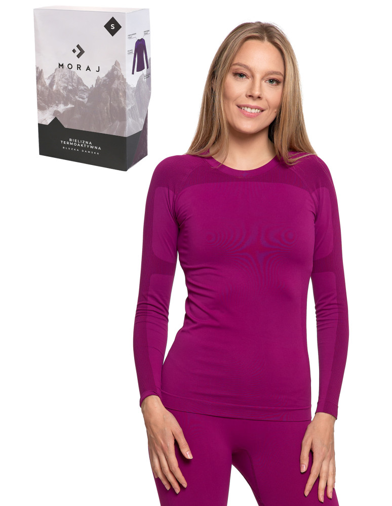 Bluzka damska termoaktywna z długim rękawem bezszwowa FIOLETOWY