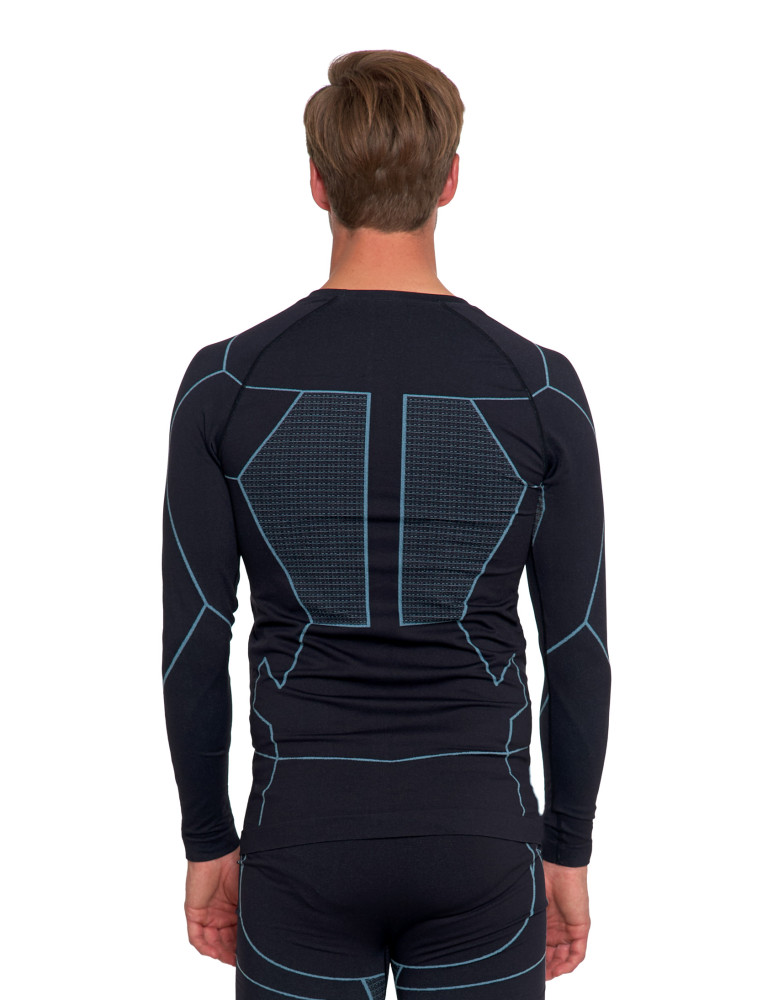 Bluzka termoaktywna męska z długim rękawem i jonami srebra NIEBIESKI