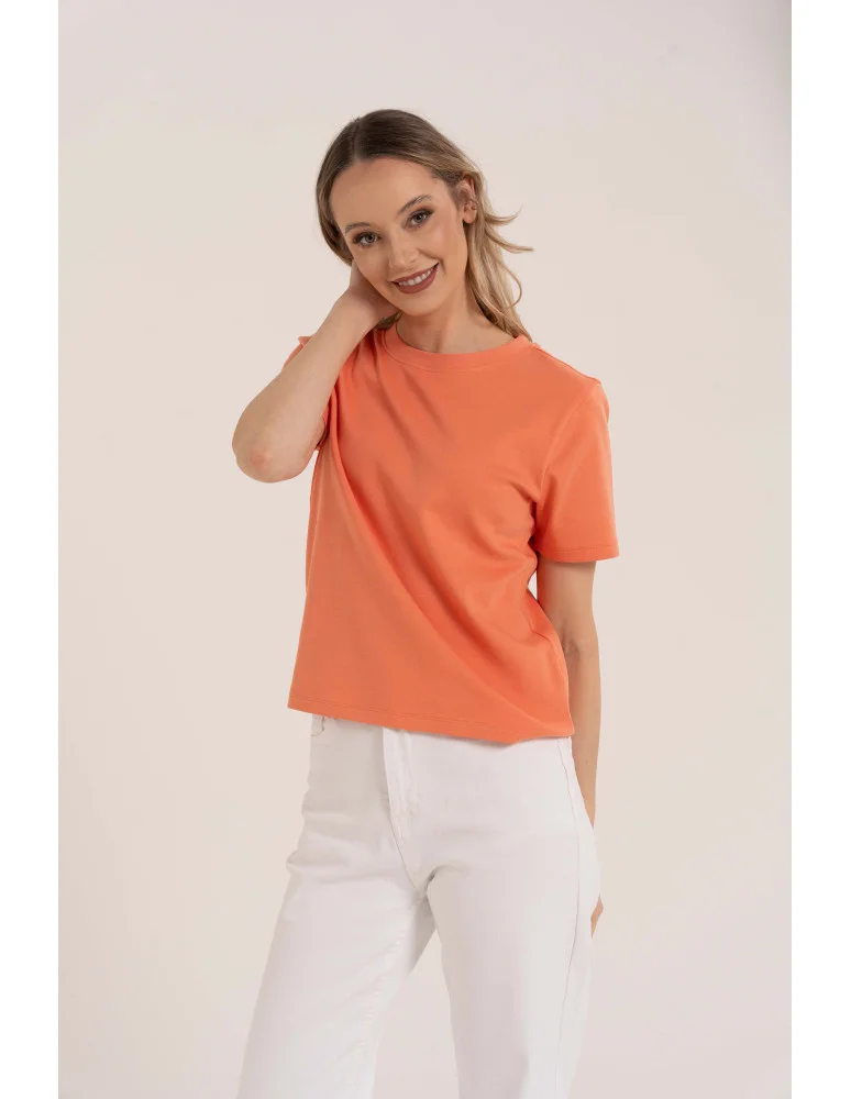T-shirt damski bawełniany gładki o klasycznym kroju POMARAŃCZOWY