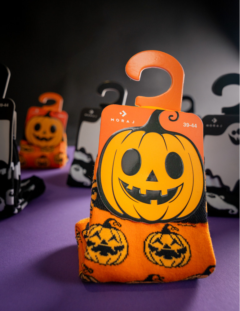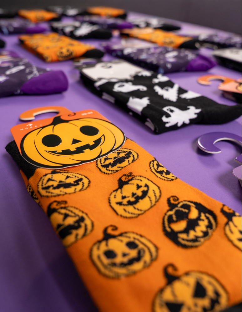 Skarpety męskie długie z motywem halloweenowym FIOLETOWY