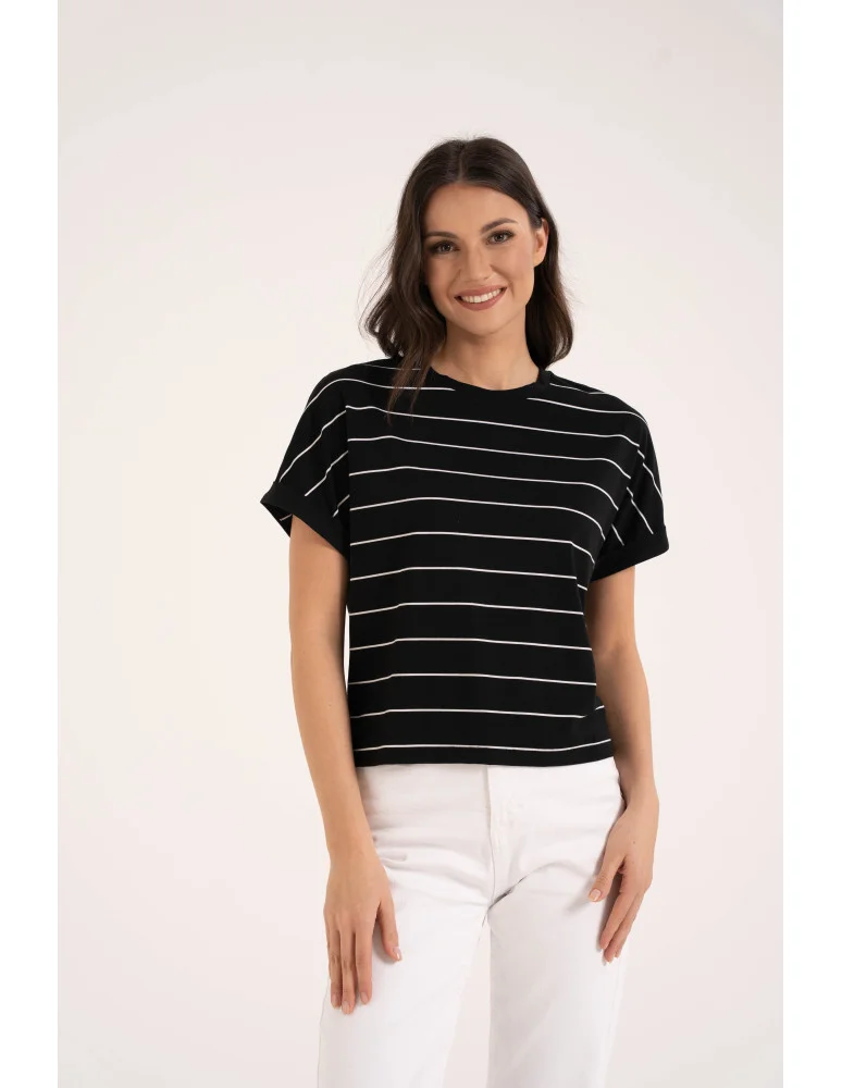 Ta bluzka damska w paski to propozycja, która łączy komfort z klasycznym stylem. Wykonana z wysokiej jakości wiskozy, jest lekka i przewiewna, co zapewnia wygodę przez cały dzień. Luźniejszy krój gwarantuje swobodę ruchów, a podwinięty rękaw dodaje jej nowoczesnego charakteru. Paski w stonowanych kolorach to ponadczasowy wzór, który pasuje do wielu stylizacji – zarówno do dżinsów, jak i spódnic, tworząc idealny look na co dzień. To uniwersalny element, który sprawdzi się w wielu okazjach.
