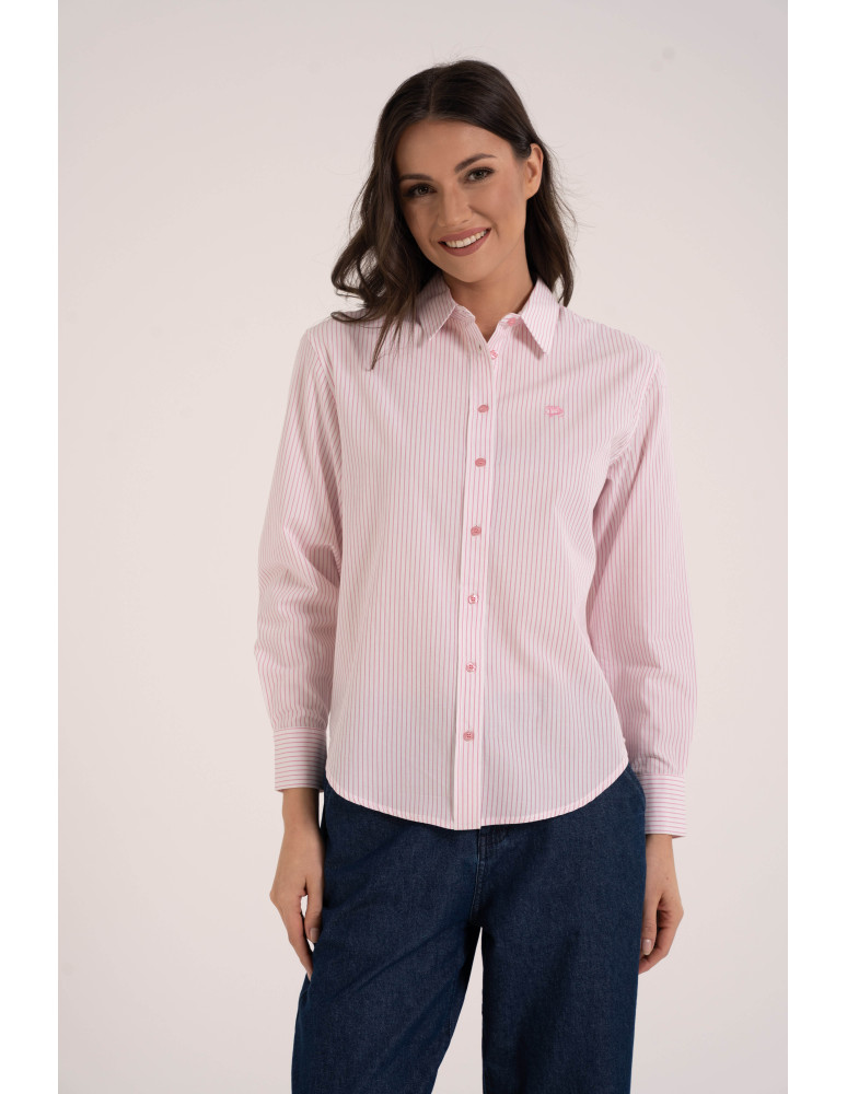 Klasyczna koszula damska bawełniana w paski RÓŻOWY
