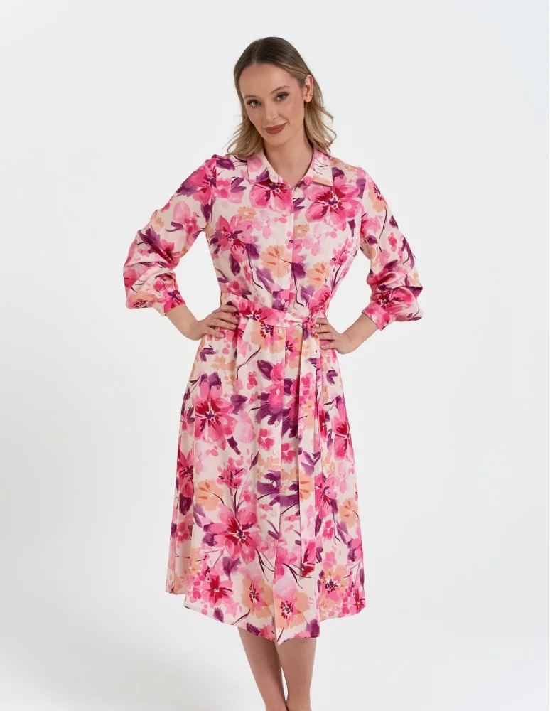 Sukienka damska szmizjerka midi z wiskozy WZÓR 2