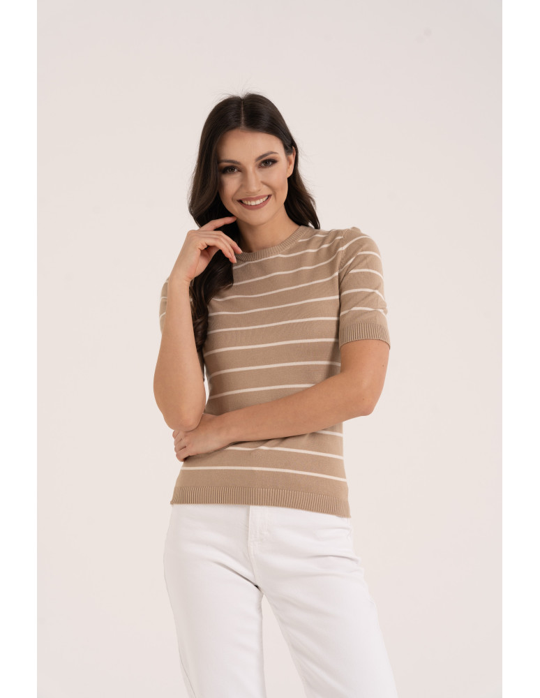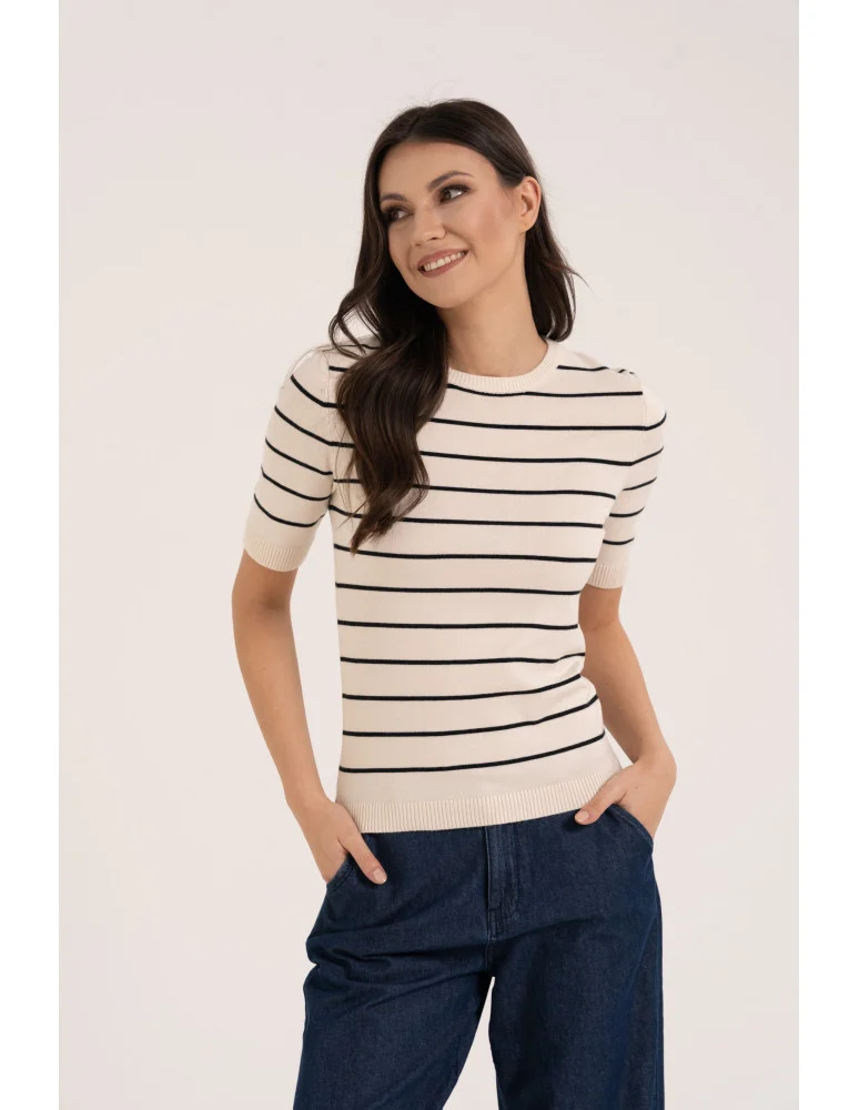 Sweter damski z krótkim rękawem z wiskozą KREMOWY