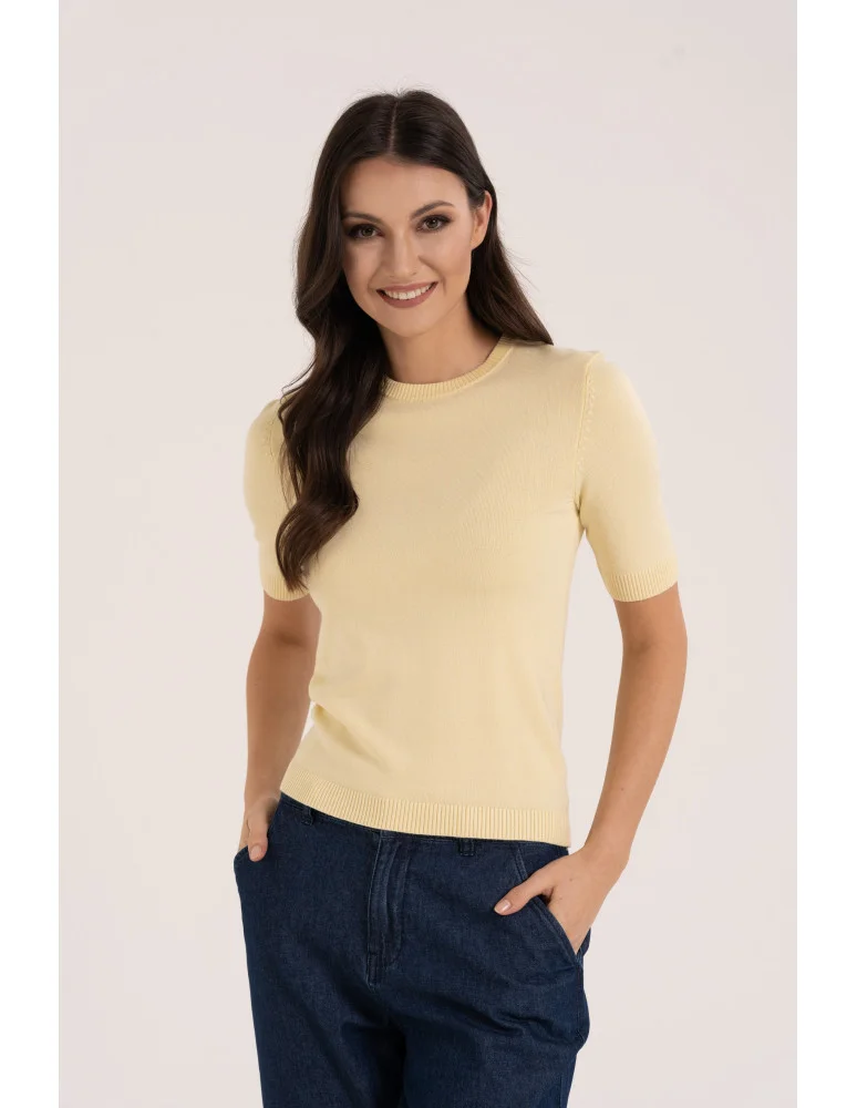 Sweter damski z krótkim rękawem z wiskozą ŻÓŁTY