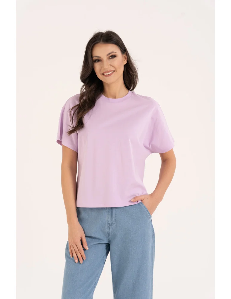 Koszulka damska bawełniana z krótkim rękawem luźny krój RÓŻOWY