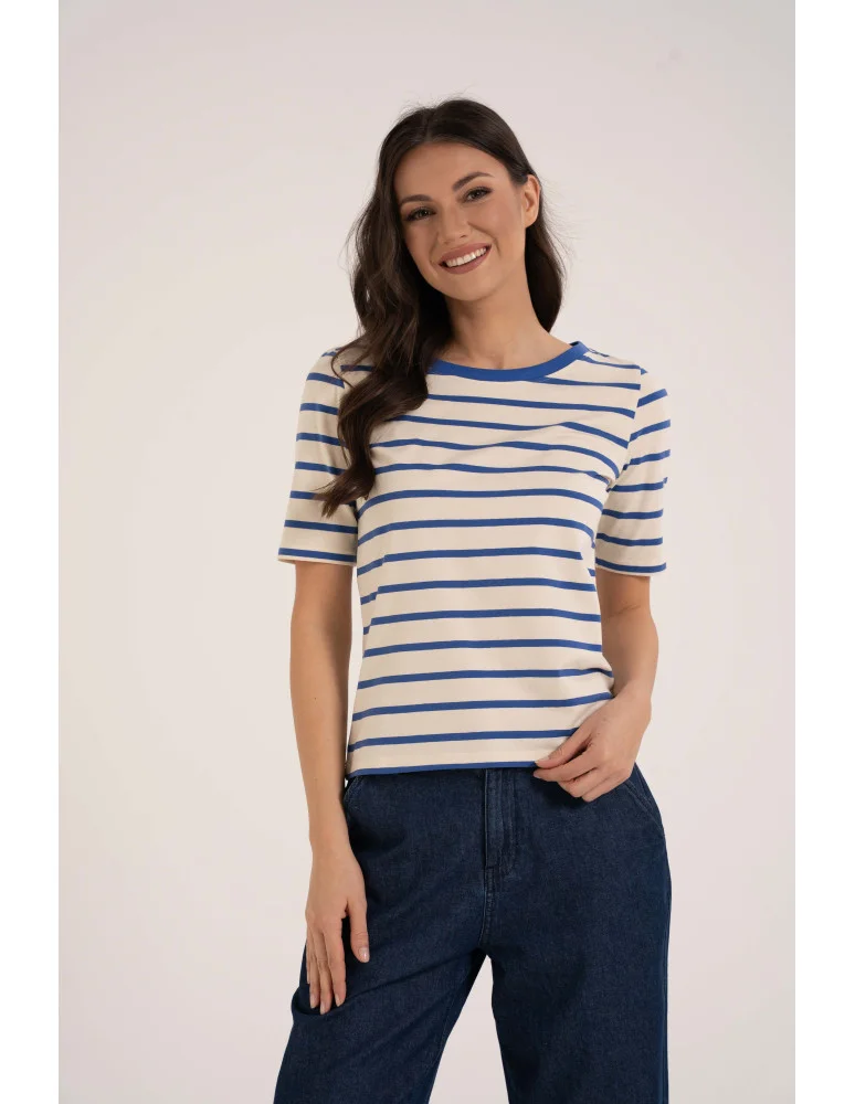 Bluzka damska bawełniana w paski z krótkim rękawem NIEBIESKI