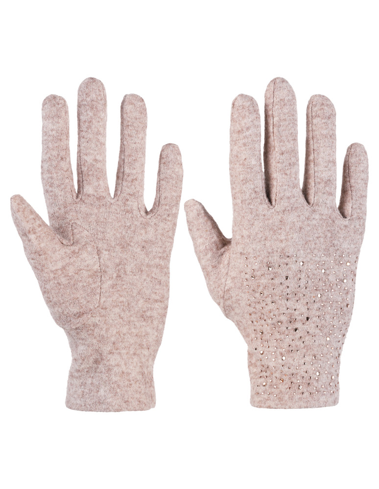 Ciepłe rękawiczki damskie idealne na chłodniejsze dni jesieni i zimy. Wykonane z wysokiej jakości mieszanki wełny, zapewniają komfort cieplny oraz wygodę użytkowania. Elegancki wzór uzupełniają subtelne dżety na wierzchniej stronie, które dodają całości kobiecego szyku i sprawiają, że rękawiczki świetnie komponują się zarówno z płaszczem, jak i kurtką. Dzięki elastycznemu materiałowi dobrze dopasowują się do dłoni, a pięciopalczasty fason pozwala na swobodę ruchów i precyzyjne operowanie palcami.