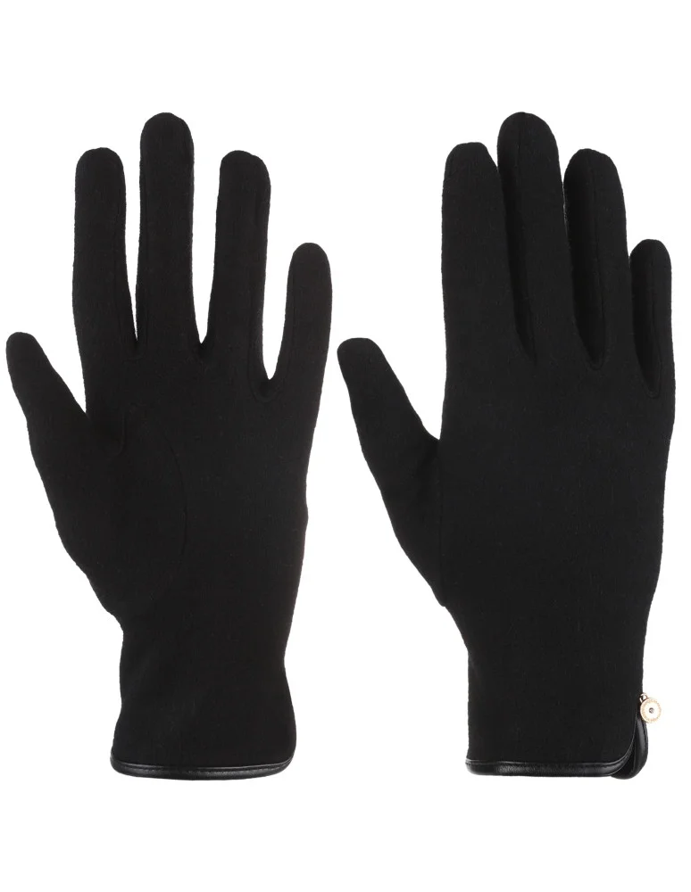 Rękawiczki damskie wełniane z eleganckim wykończeniem CZARNY