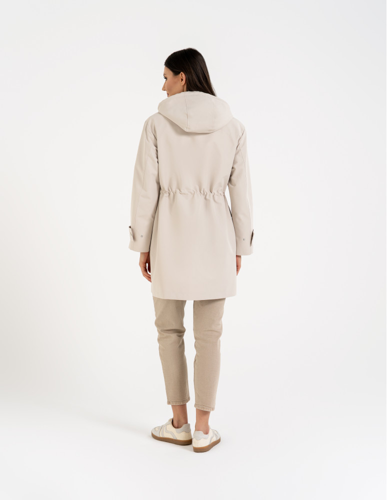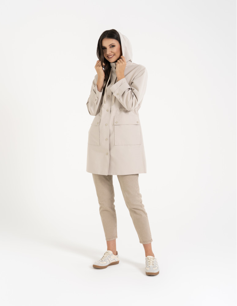 Kurtka damska parka przeciwdeszczowa z kapturem BEŻOWY