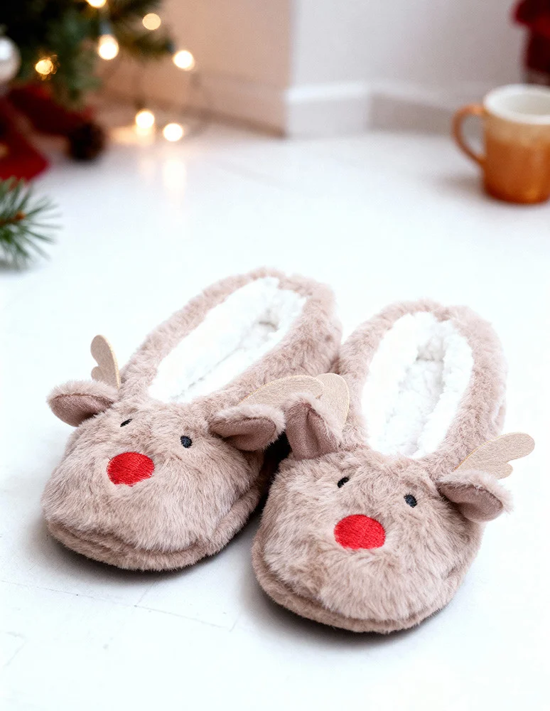 Zestaw prezentowy świąteczny to idealny upominek świąteczny, który zapewni komfort i uśmiech w zimowe dni! W komplecie znajdują się mięciutkie kapcie w kształcie renifera z czerwonym noskiem oraz pasująca opaska na oczy – idealna do relaksu i spokojnego snu. Oba elementy wykonane są z wyjątkowo miękkiego, pluszowego materiału, który otula ciepłem i przyjemnością. Kapcie posiadają antypoślizgową podeszwę, a opaska elastyczną gumkę dopasowującą się do głowy. Całość zapakowana w eleganckie pudełko ozdobione świąteczną grafiką i kokardą – gotowe do wręczenia jako prezent!