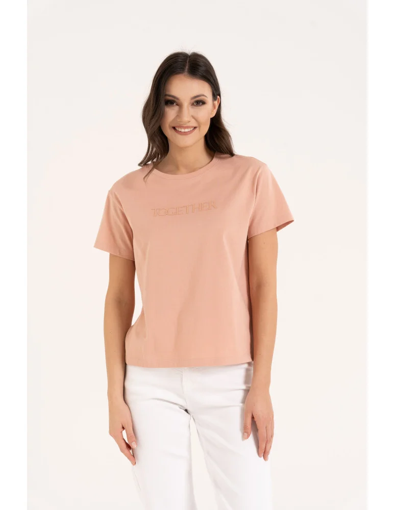 Bawełniana koszulka damska z napisem tonalnym RÓŻOWY