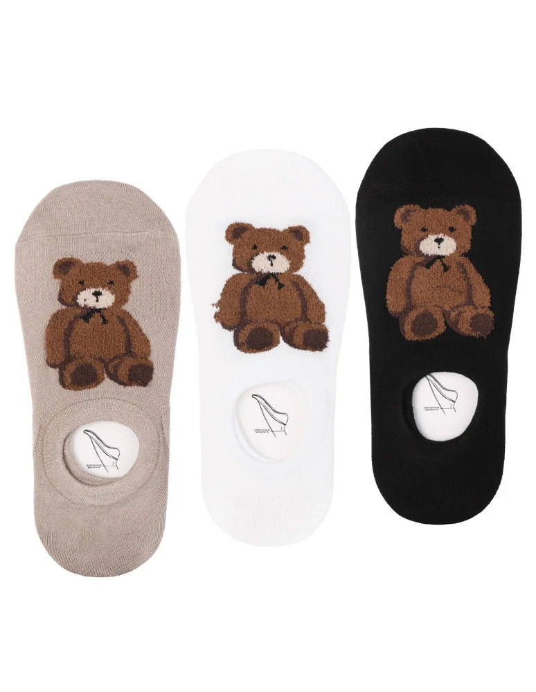 Skarpety damskie stopki niskie z pluszowym misiem 3-pak WIELOKOLOROWY