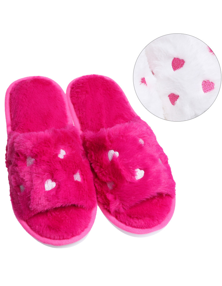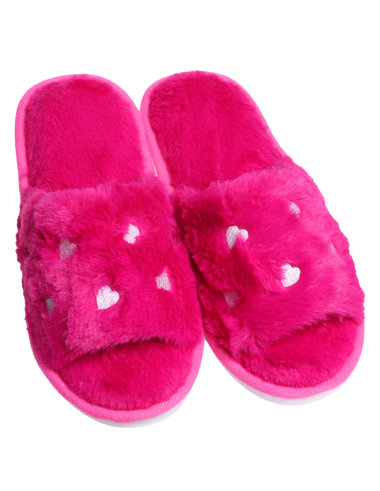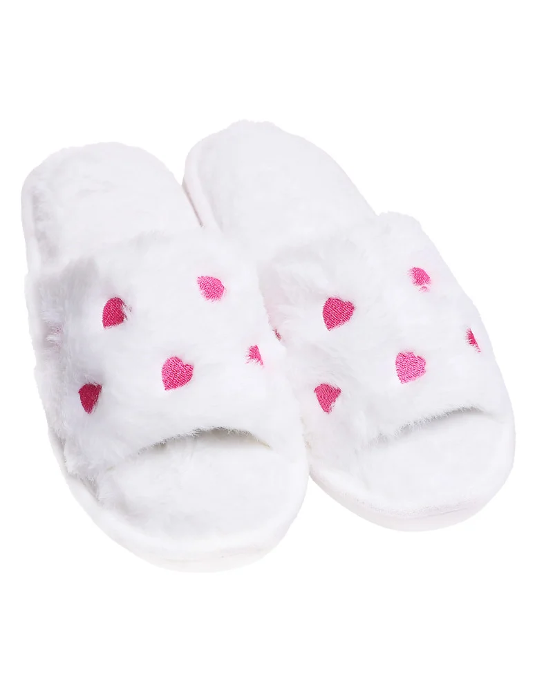 Damskie kapcie domowe futrzane z serduszkami BIAŁY