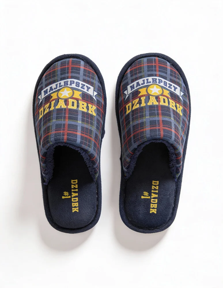 Ciepłe, wygodne i praktyczne kapcie męskie „Najlepszy Dziadek” to idealny prezent na Dzień Dziadka. Klasyczny fason z otwartą piętą zapewnia komfort użytkowania, a miękka wyściółka dba o wygodę każdego kroku. Kapcie ozdobione są napisem „Najlepszy Dziadek” oraz motywem gwiazdy na granatowym tle w modną kratę. Dołączone eleganckie pudełko prezentowe w tym samym stylu czyni z nich gotowy upominek, bez potrzeby dodatkowego pakowania. Doskonały wybór dla dziadka, który zasługuje na wszystko, co najlepsze.