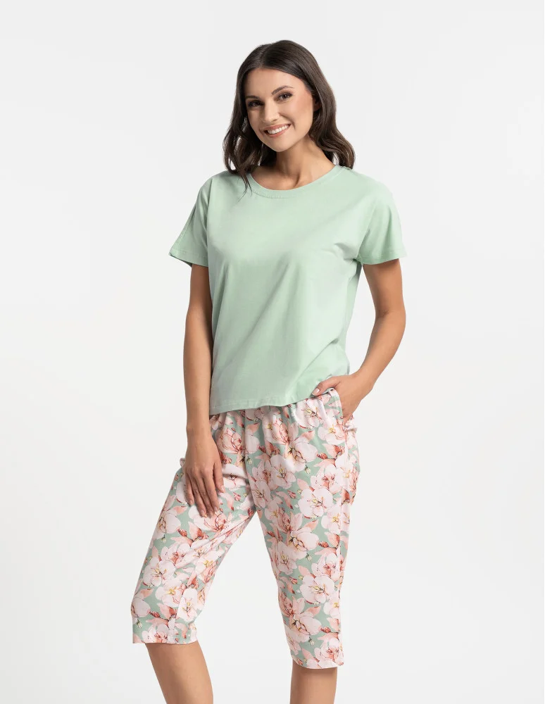 - Piżama damska z T-shirtem i spodniami 3/4