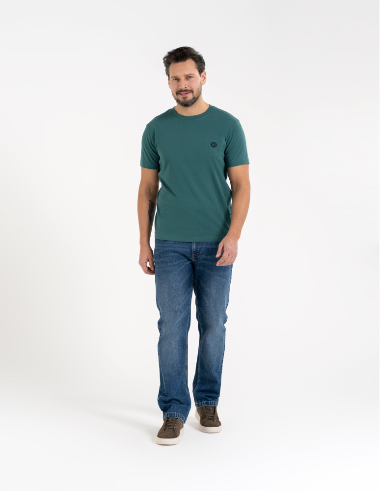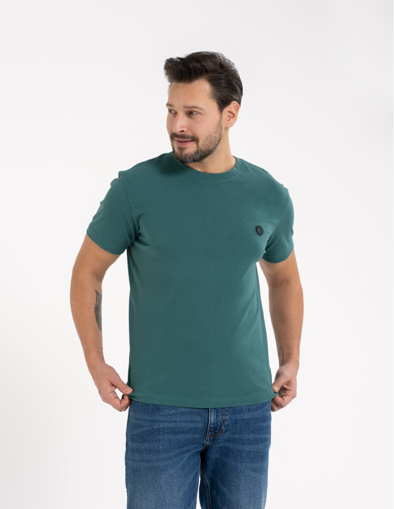 Klasyczny męski T-shirt z bawełny 100%, który łączy minimalistyczny styl z wysokim komfortem noszenia. Wykonany z naturalnej, oddychającej dzianiny bawełnianej, poddanej procesowi silicone wash, dzięki czemu koszulka jest wyjątkowo miękka, gładka i przyjemna w dotyku.