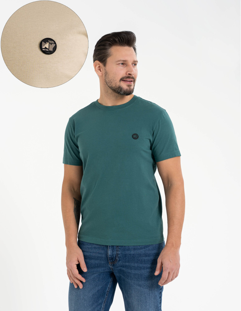 T-shirt męski bawełniany regularny krój z gumową naszywką BEŻOWY