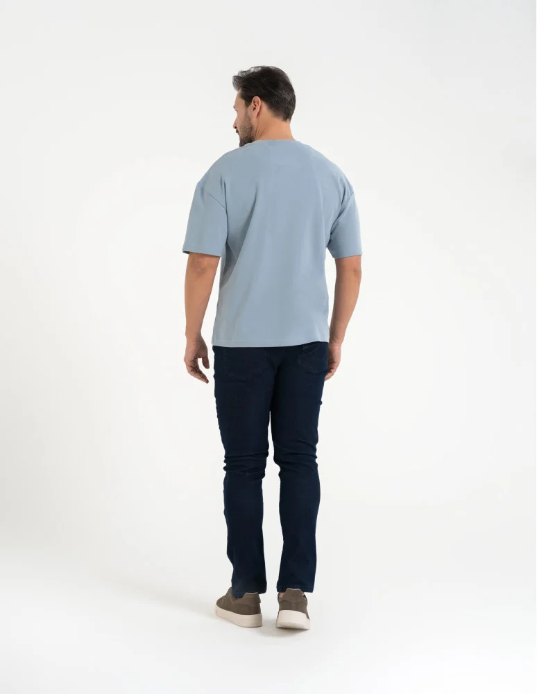 T-shirt męski o luźnym kroju koszulka 100% bawełna NIEBIESKI