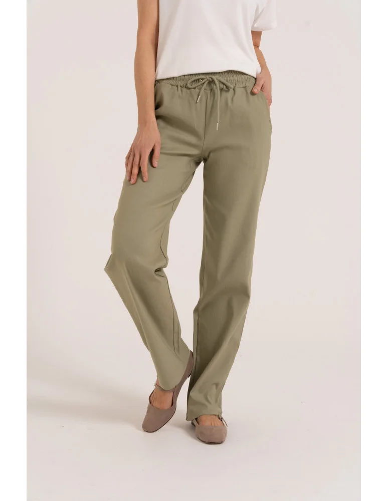 Model z elastyczną talią i troczkiem ułatwia idealne dopasowanie do sylwetki, a praktyczne kieszenie zwiększają funkcjonalność. Prosty krój optycznie wydłuża nogi, dodając sylwetce lekkości.